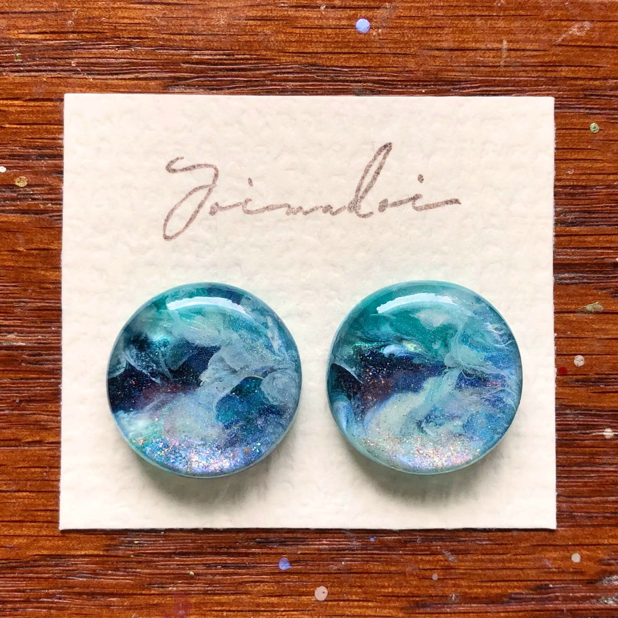 【 青い照明 -真空と光素-】再作 20mm耳飾り