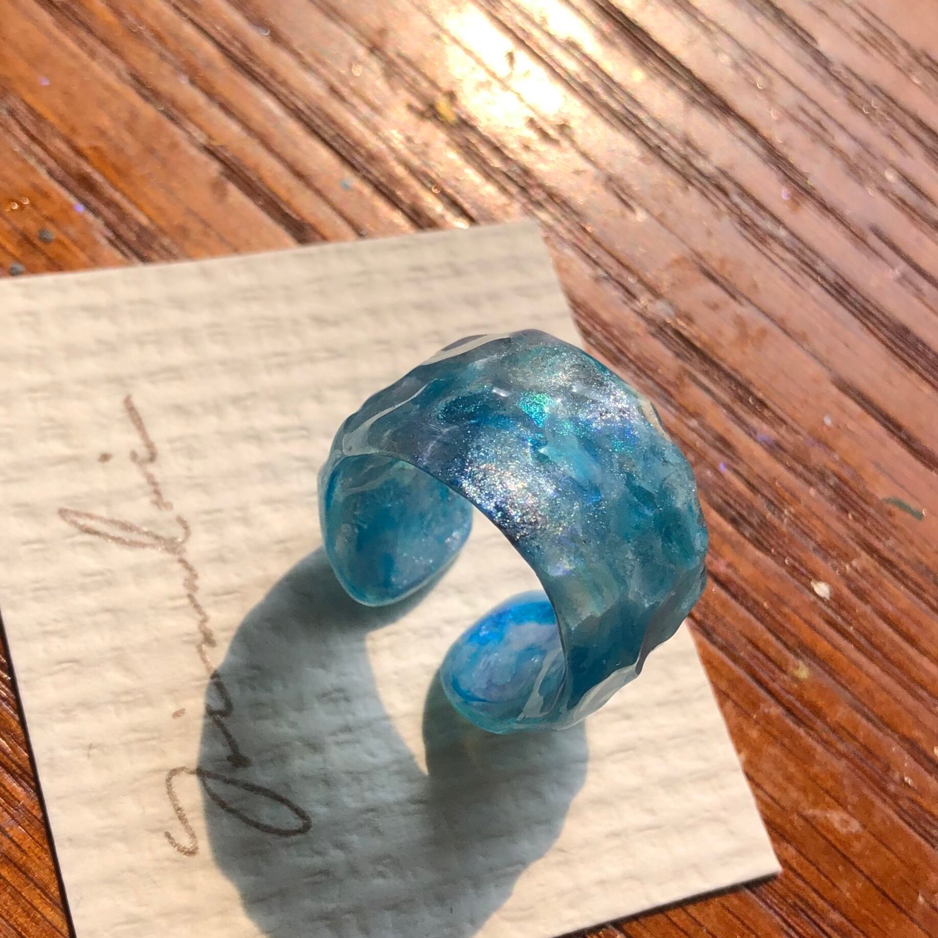 〇受注という事で、ご注文いただいてから制作いたします。その為、同じ色を使っても色の出方や模様の出方、リングの形状に必ず個体差が出てきます。その点をご了承ください。
