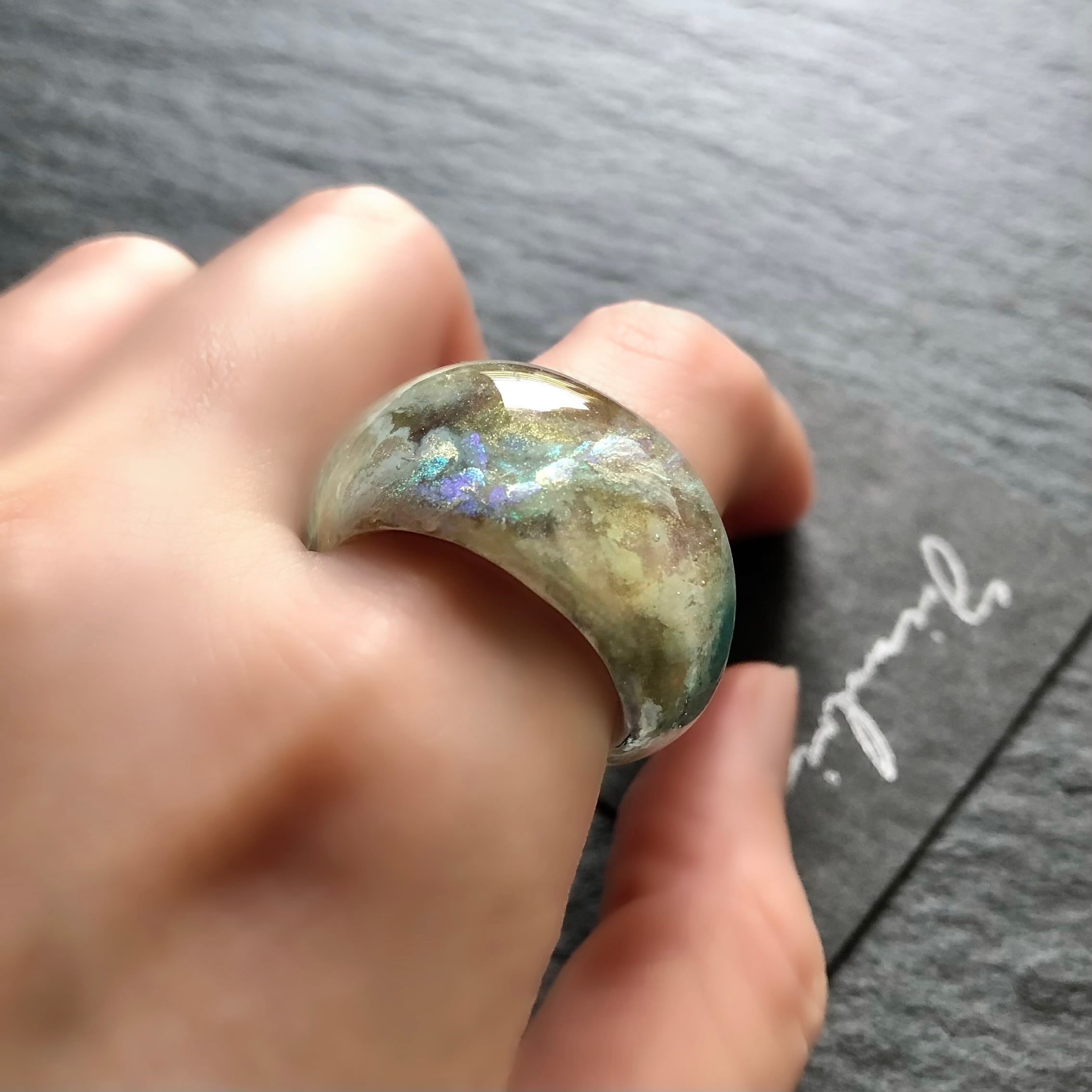 ○幅広な指輪となる為、ピッタリでお作りすると着脱の際にキツく感じるかと思います。ご指定いただいた号数に少しだけゆとりを持たせたサイズ感でお作りします。