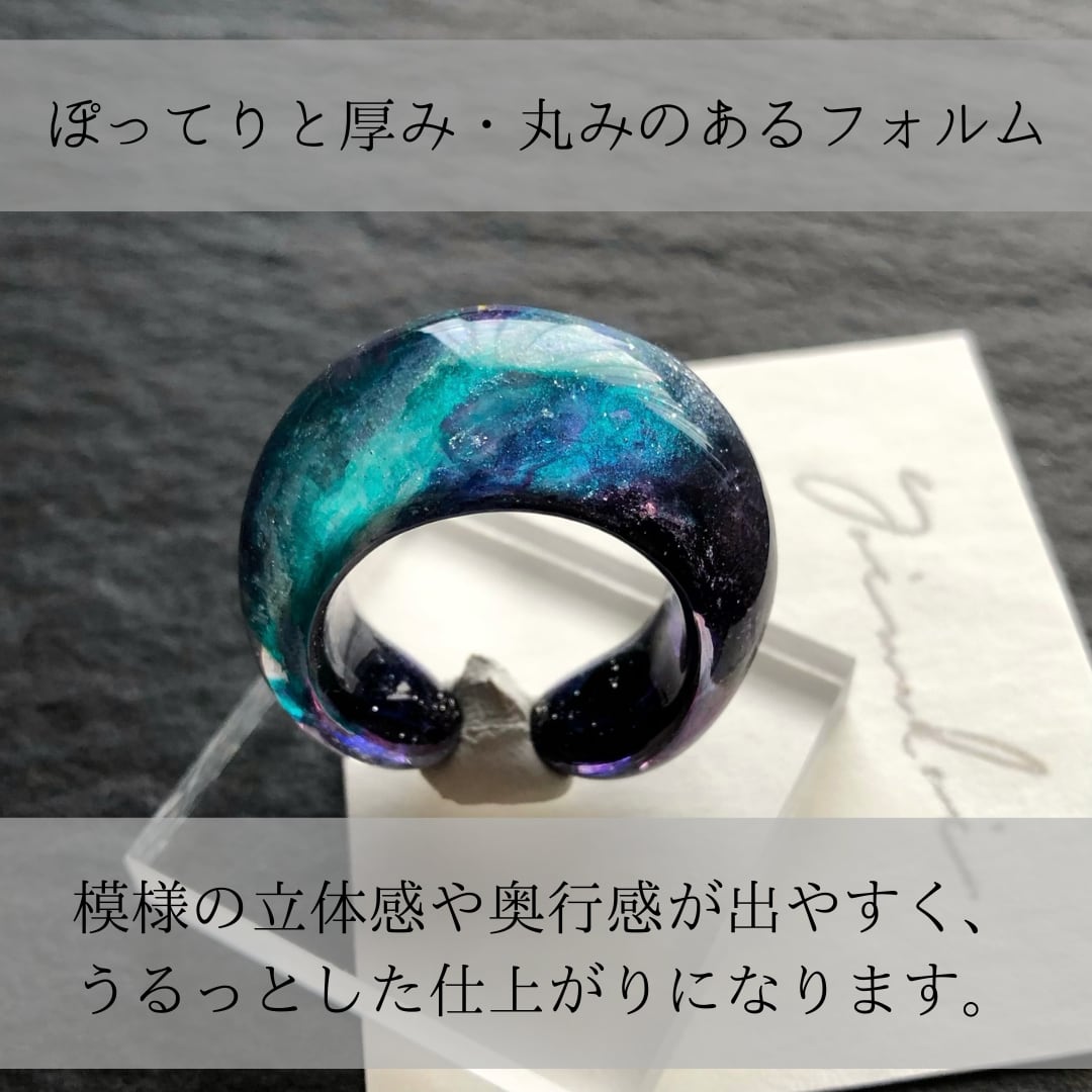 ※レジンにはガラスや鉱石のような強度は無いため、表面を硬いもので擦ったりしないようお気をつけください。また、細身のものや薄型のもの(特にイヤーカフ型)は外圧で亀裂が入ったり割れてしまったりする場合がございますのでお気をつけください。