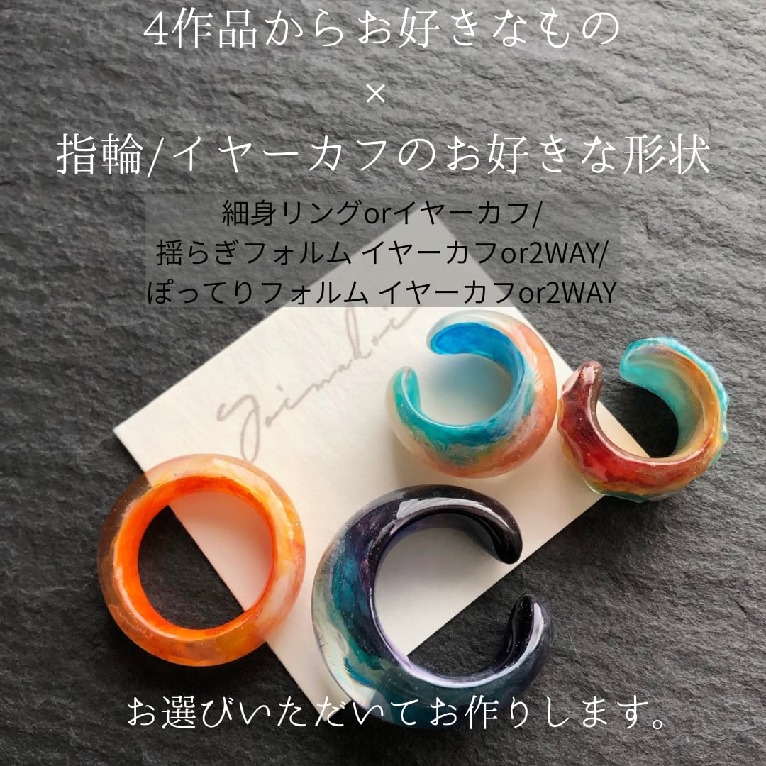 この4作品をそれぞれイヤーカフ/指輪の形にいたします。
