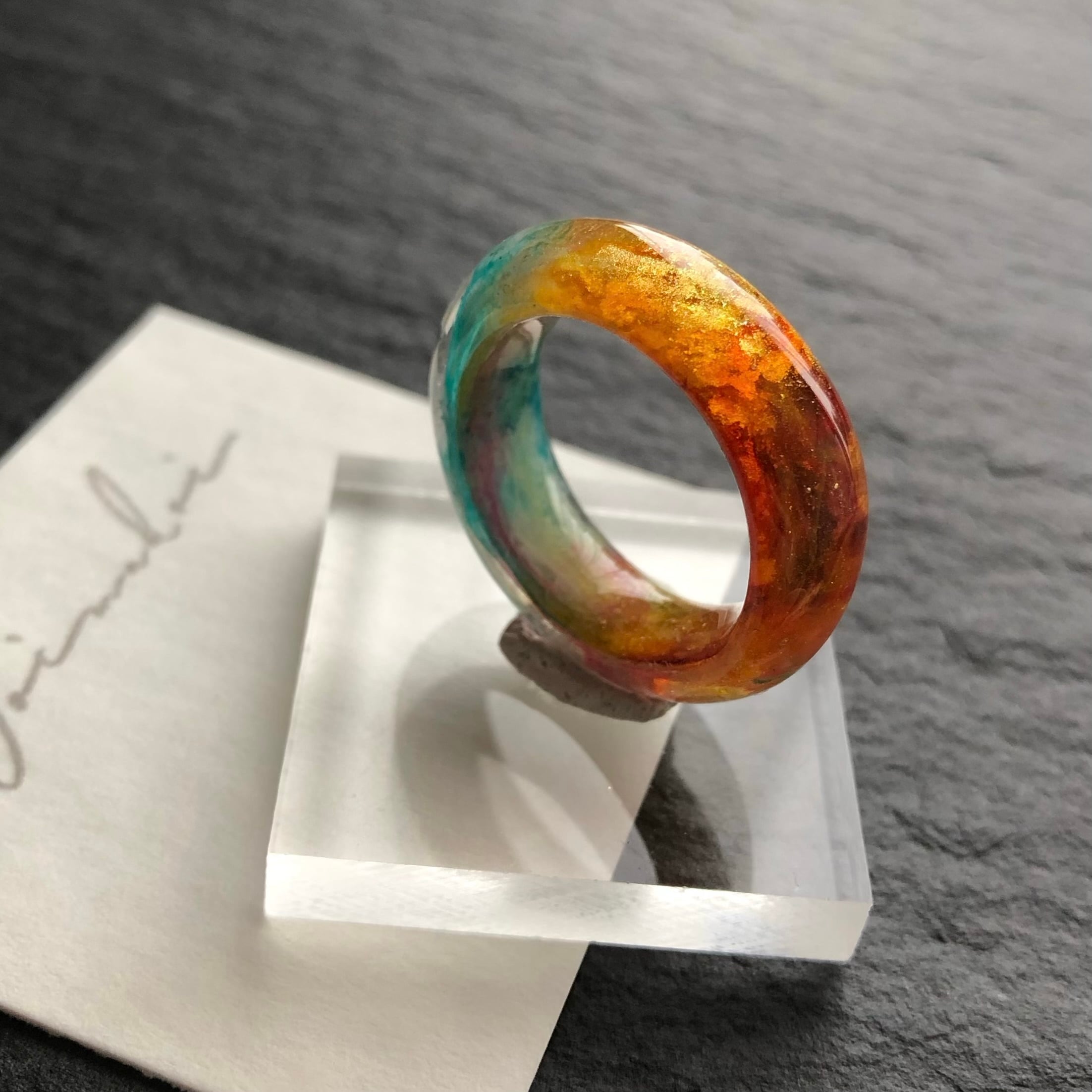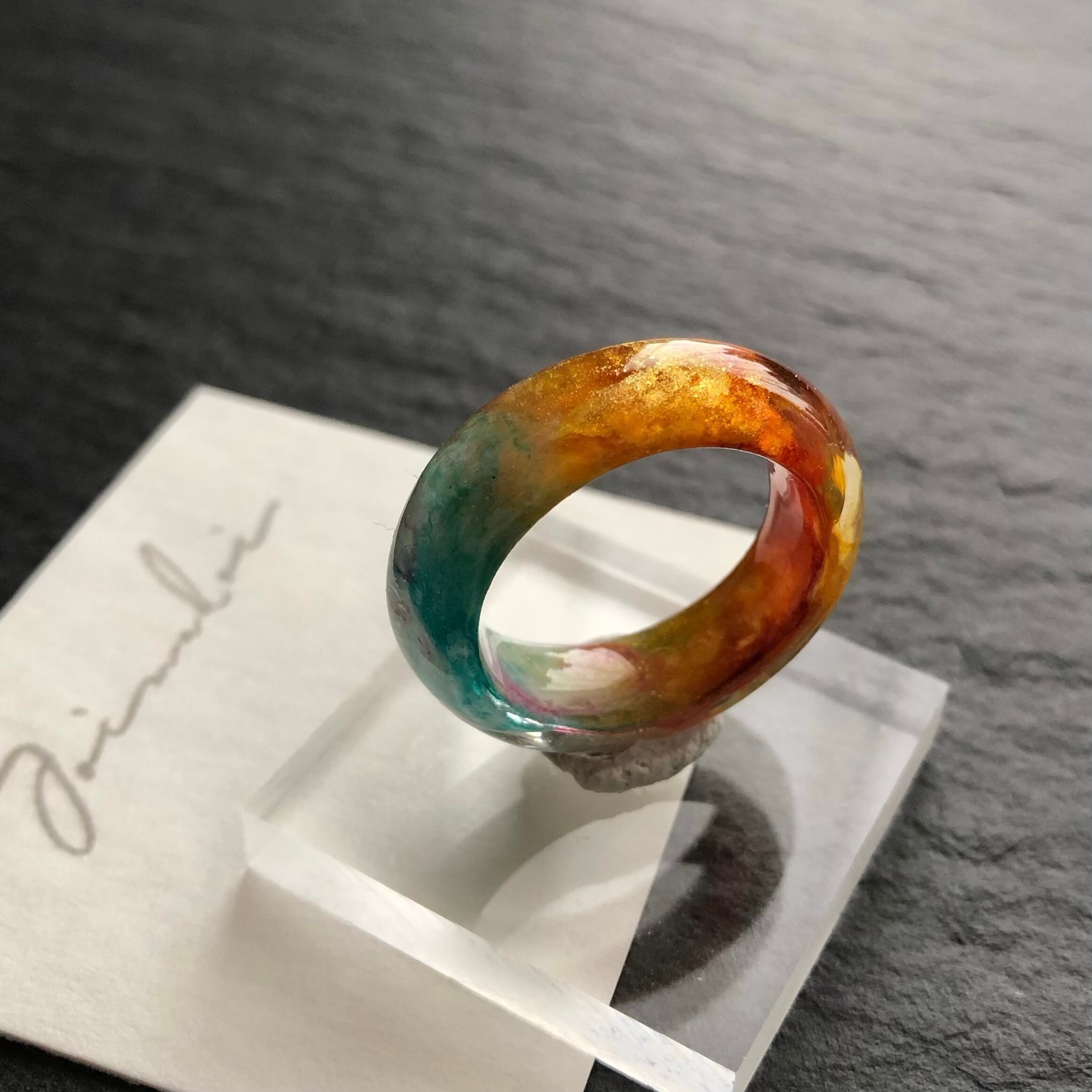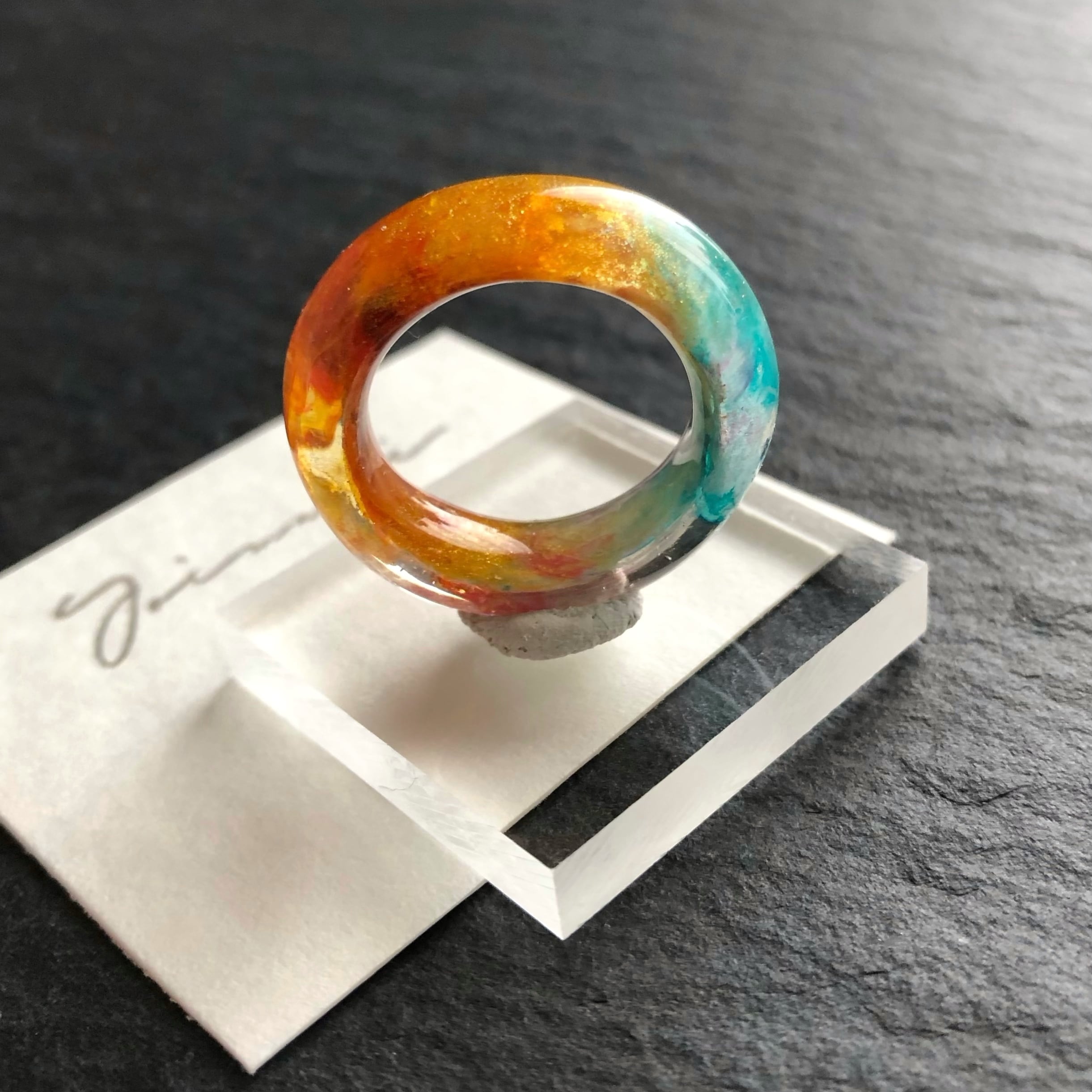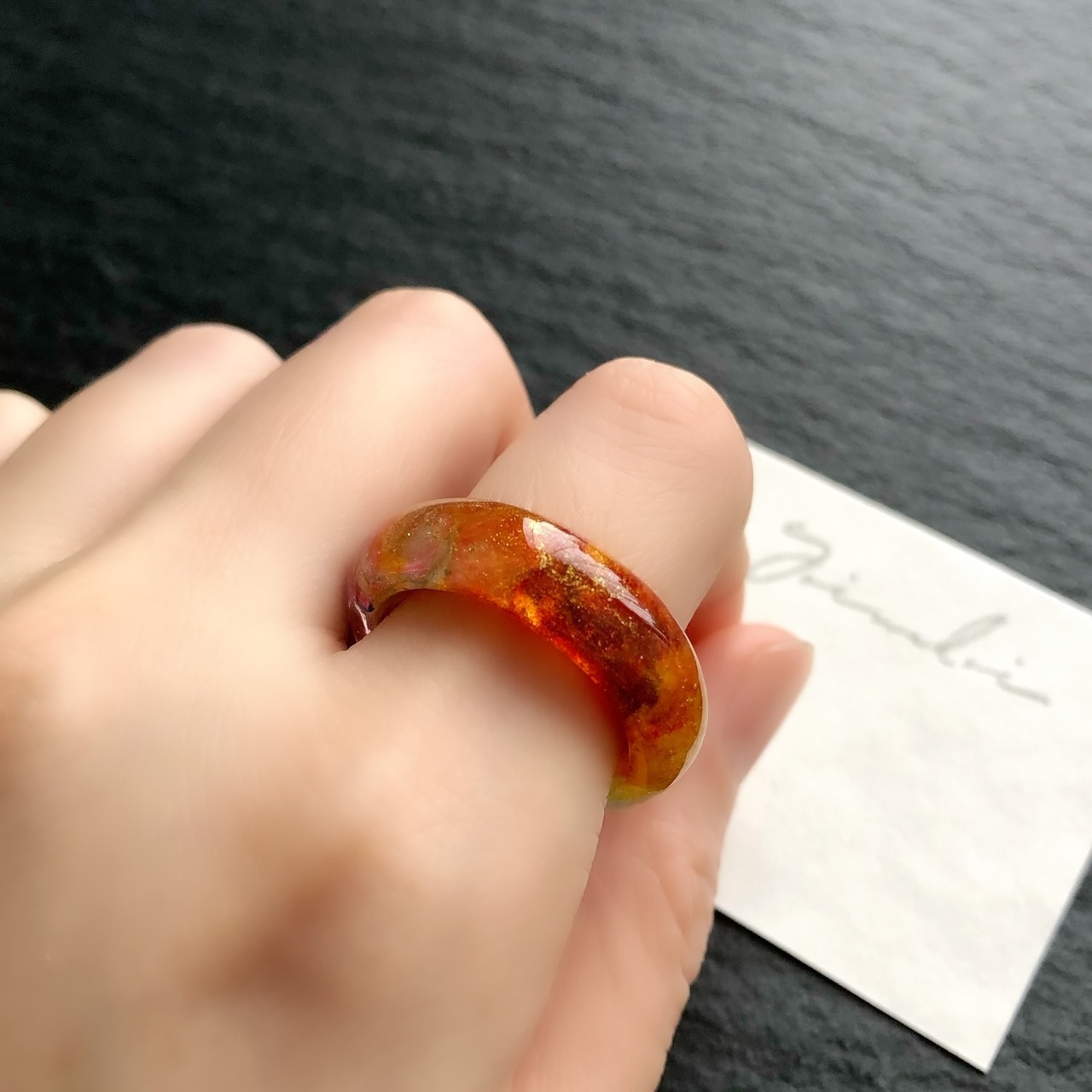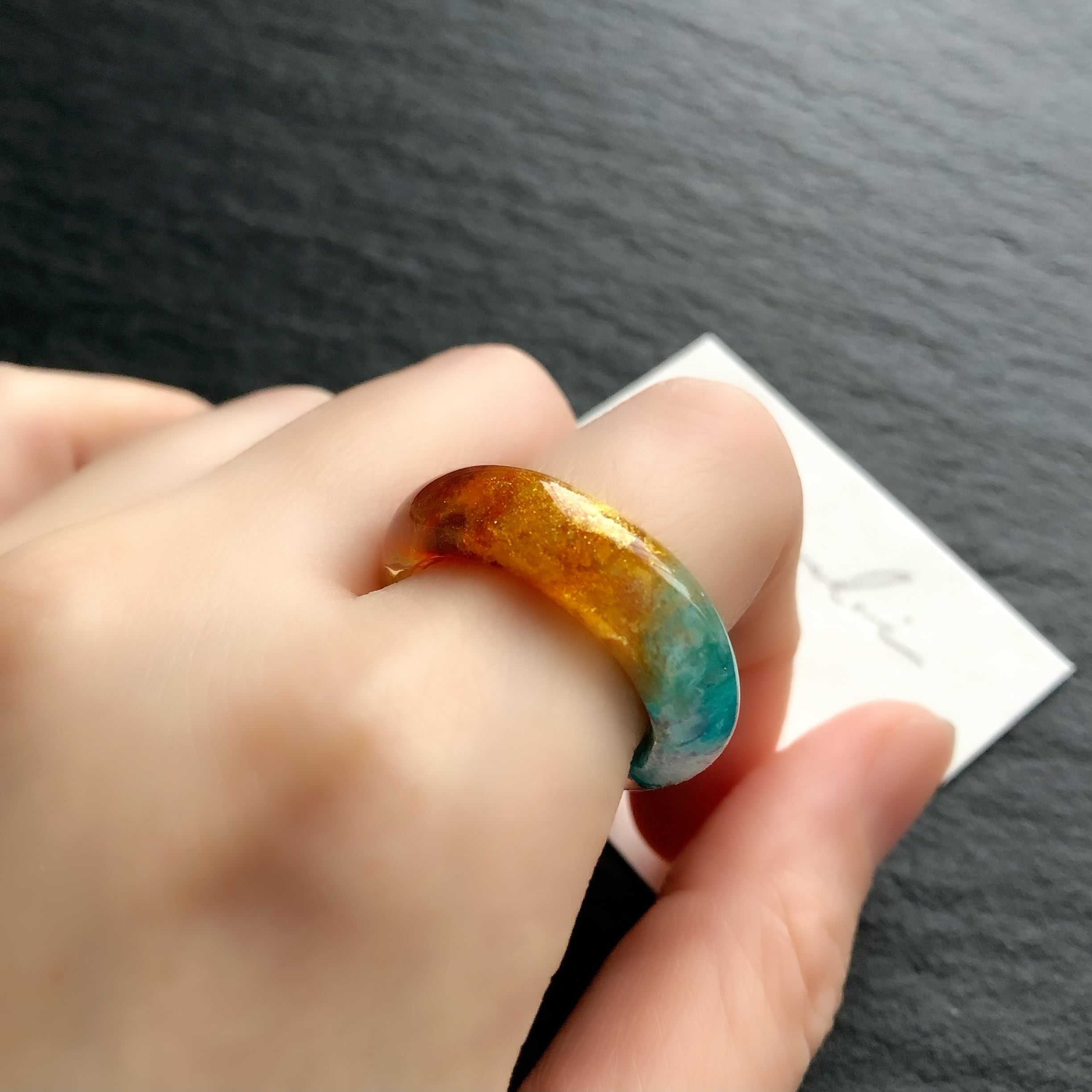 *サイズは日本標準規格で作られたリングゲージで測っておりますが、型を使わずフリーハンドで制作している為に幾分かの誤差が出ます。また、幅広なリングの為ぴったりめのサイズでご注文いただくと少し窮屈に感じる場合がございます。