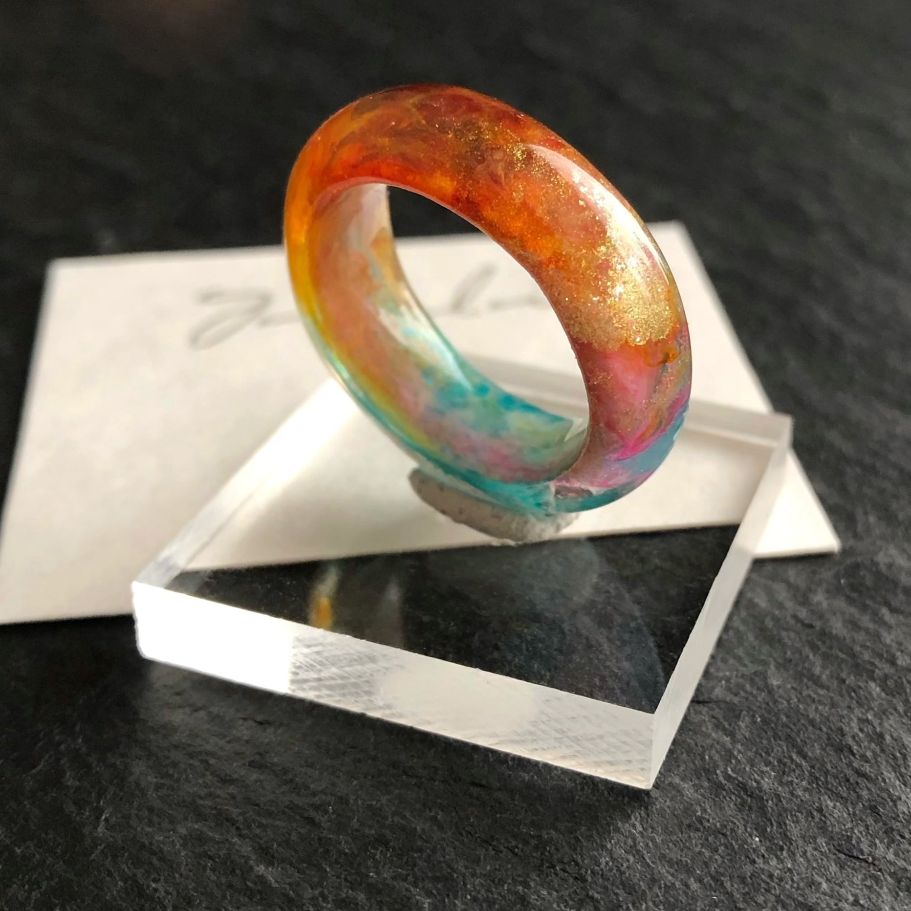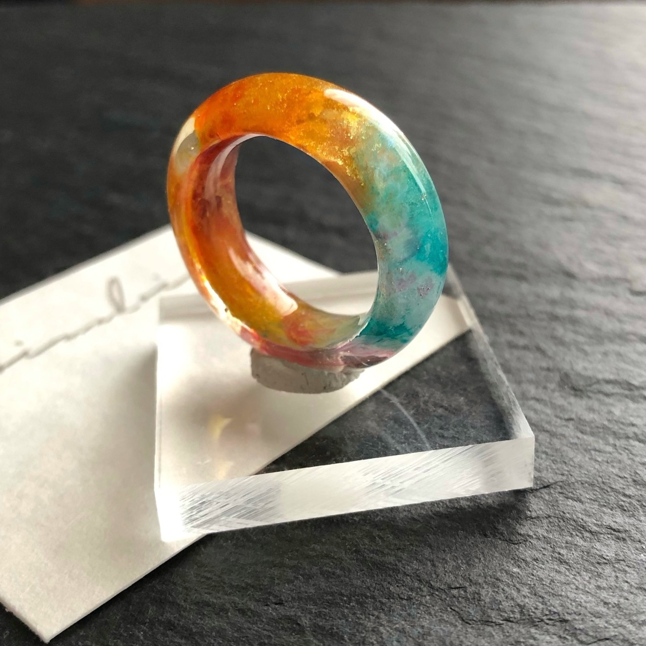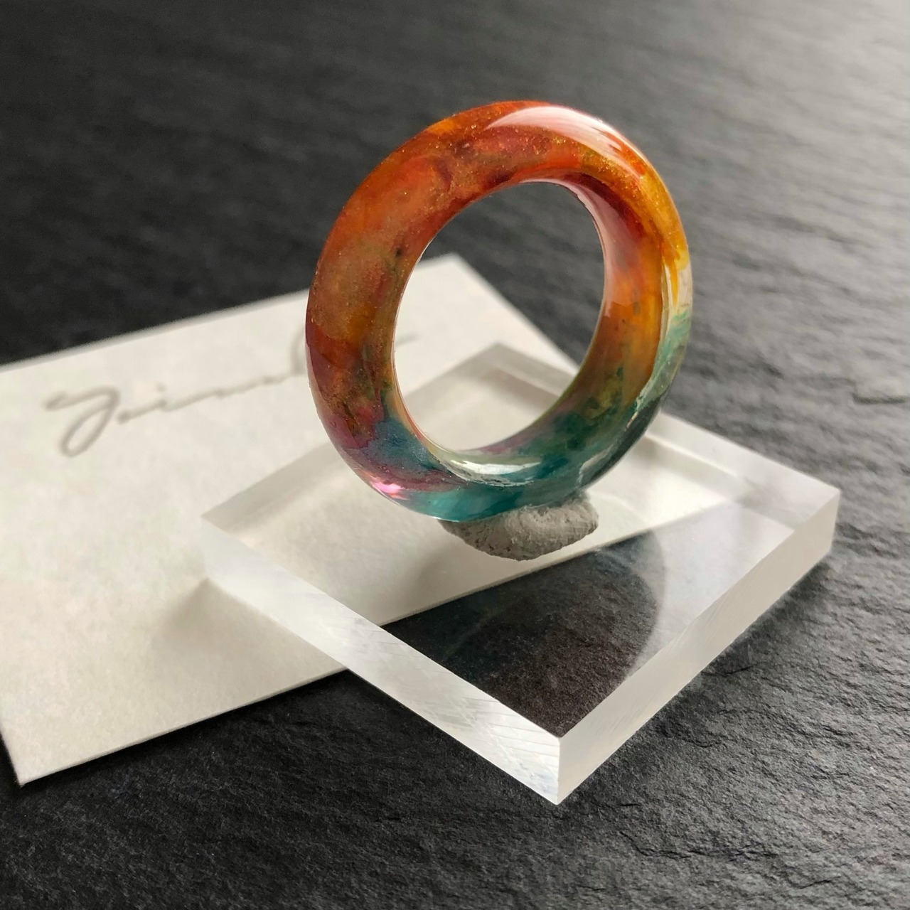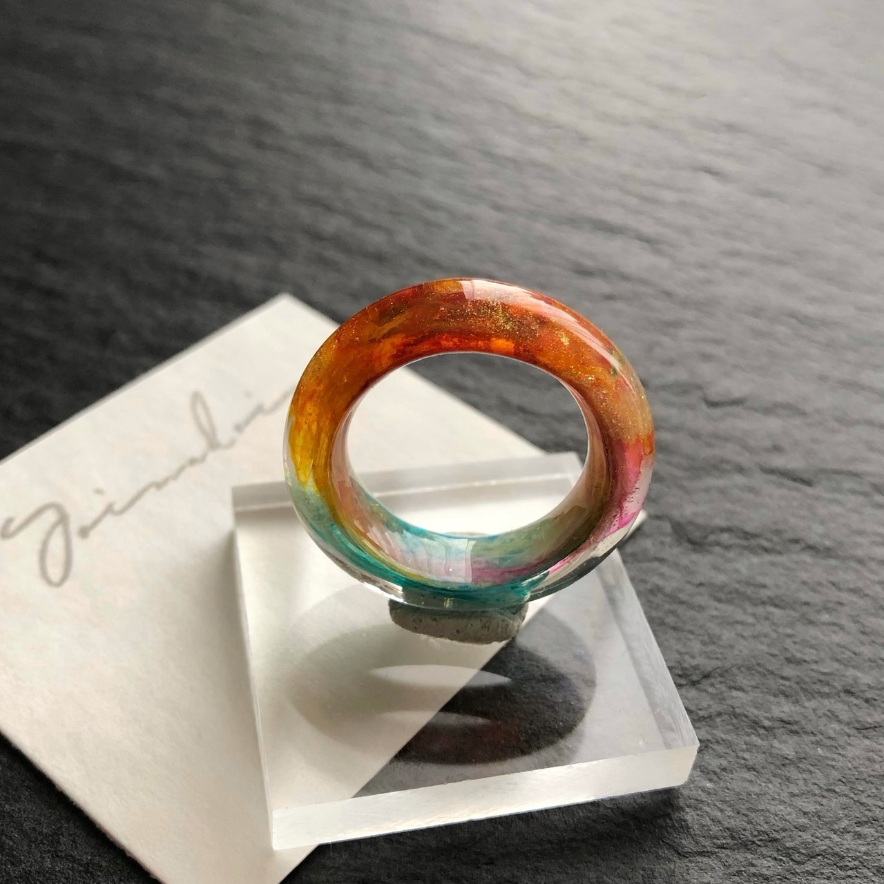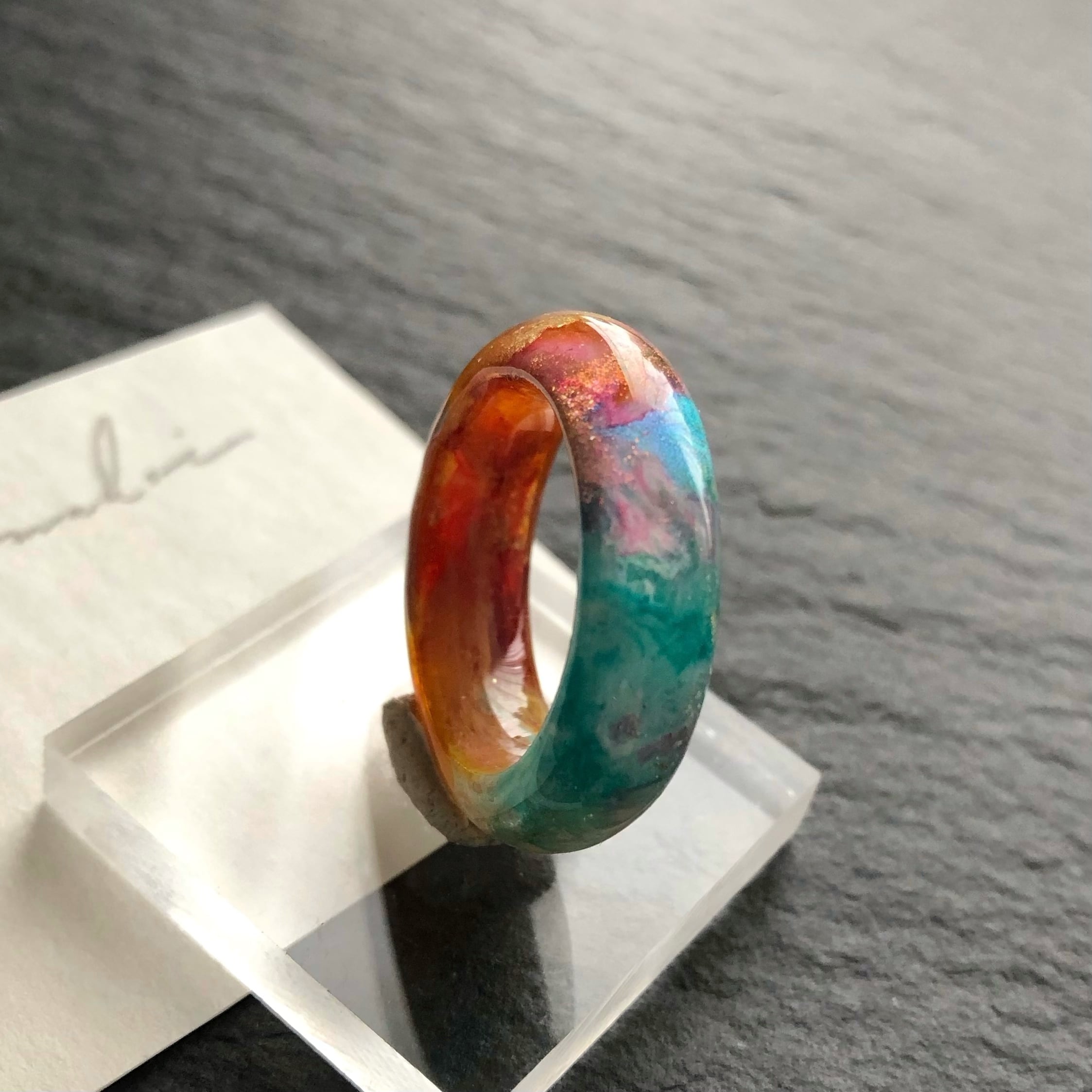 *サイズは日本標準規格で作られたリングゲージで測っておりますが、型を使わずフリーハンドで制作している為に幾分かの誤差が出ます。また、幅広なリングの為ぴったりめのサイズでご注文いただくと少し窮屈に感じる場合がございます。