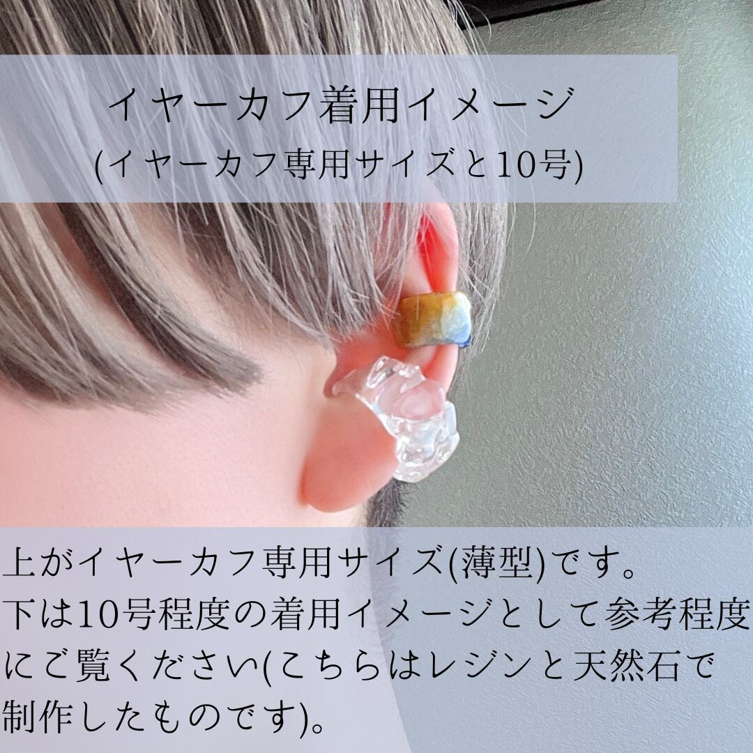 〇イヤーカフ専用サイズでご注文いただいている場合は号数のご選択は"イヤーカフ専用"をお選びください。別の号数を選ばれた場合でも、イヤーカフ専用サイズでの製作となります。