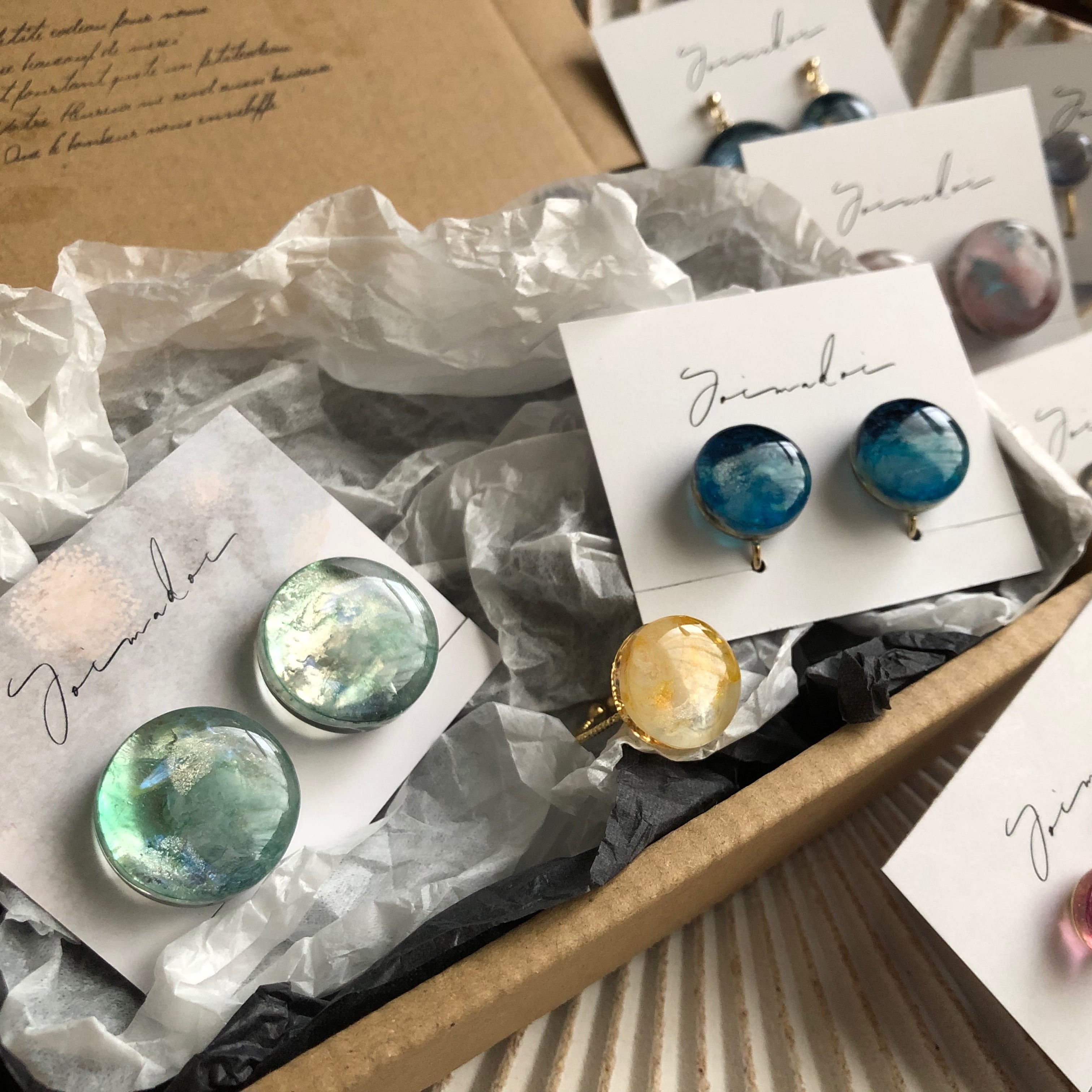 ※指輪だけの箱はありません。耳飾り2点、指輪が1点が基本ですが、組み合わせのご希望がある際はご購入前にご相談ください。