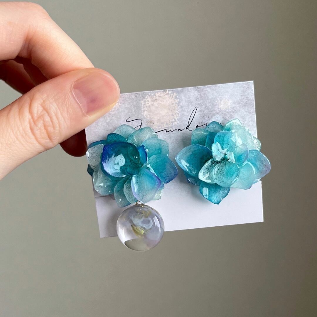 ※此方の作品はネジバネ式イヤリング(ロジウムカラー)で仕立てております。変更は出来かねますので、ご了承くださいませ。