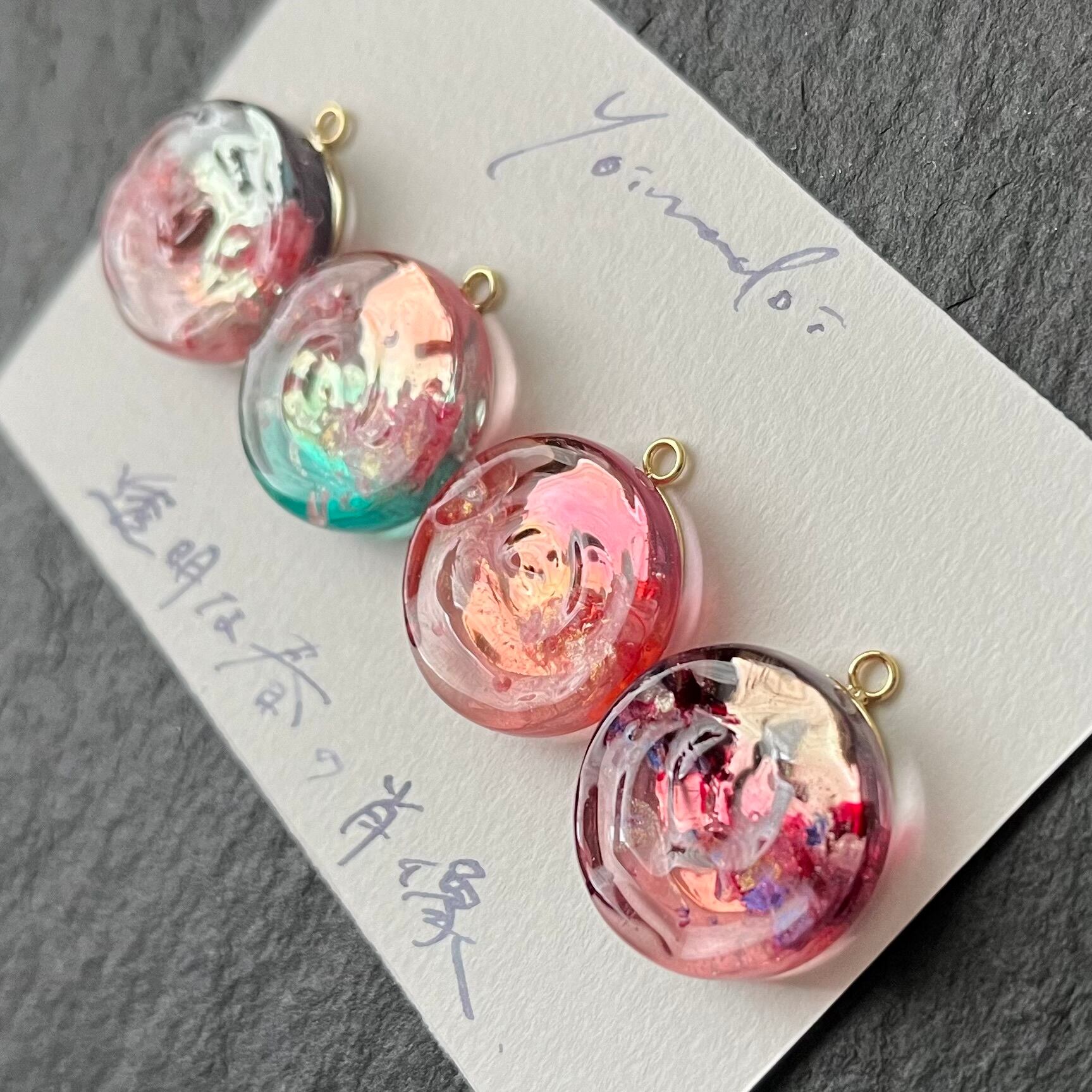 耳飾りとして販売した【宵待ち】【春風】【雪の果】の3種に、セット限定カラーを加えた4種をペンダントトップにお仕立てします。
