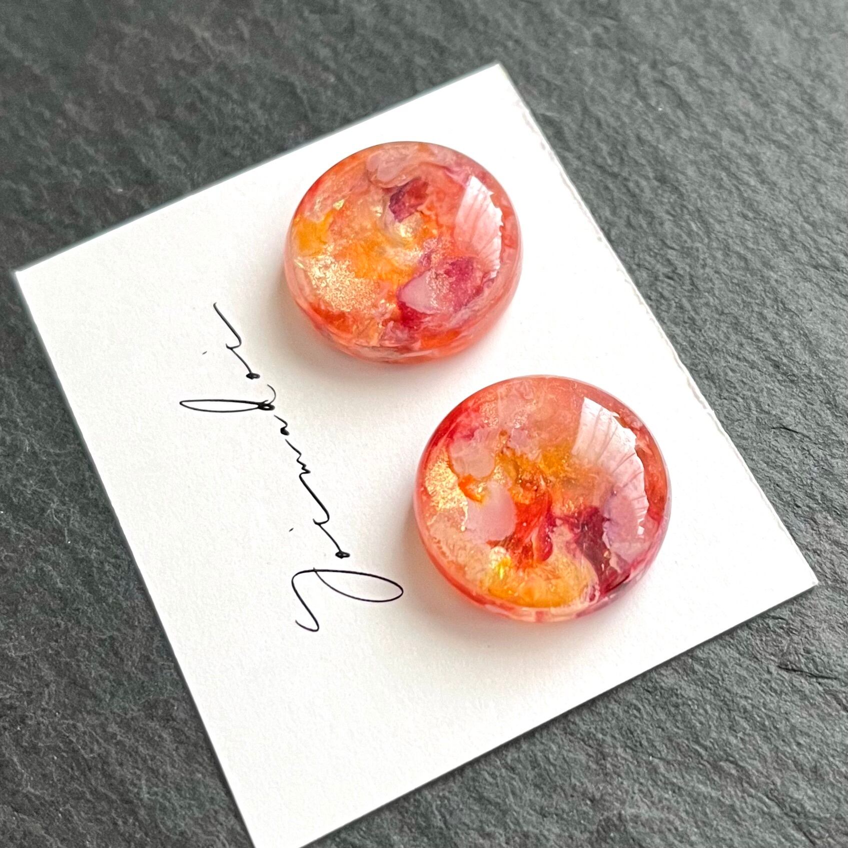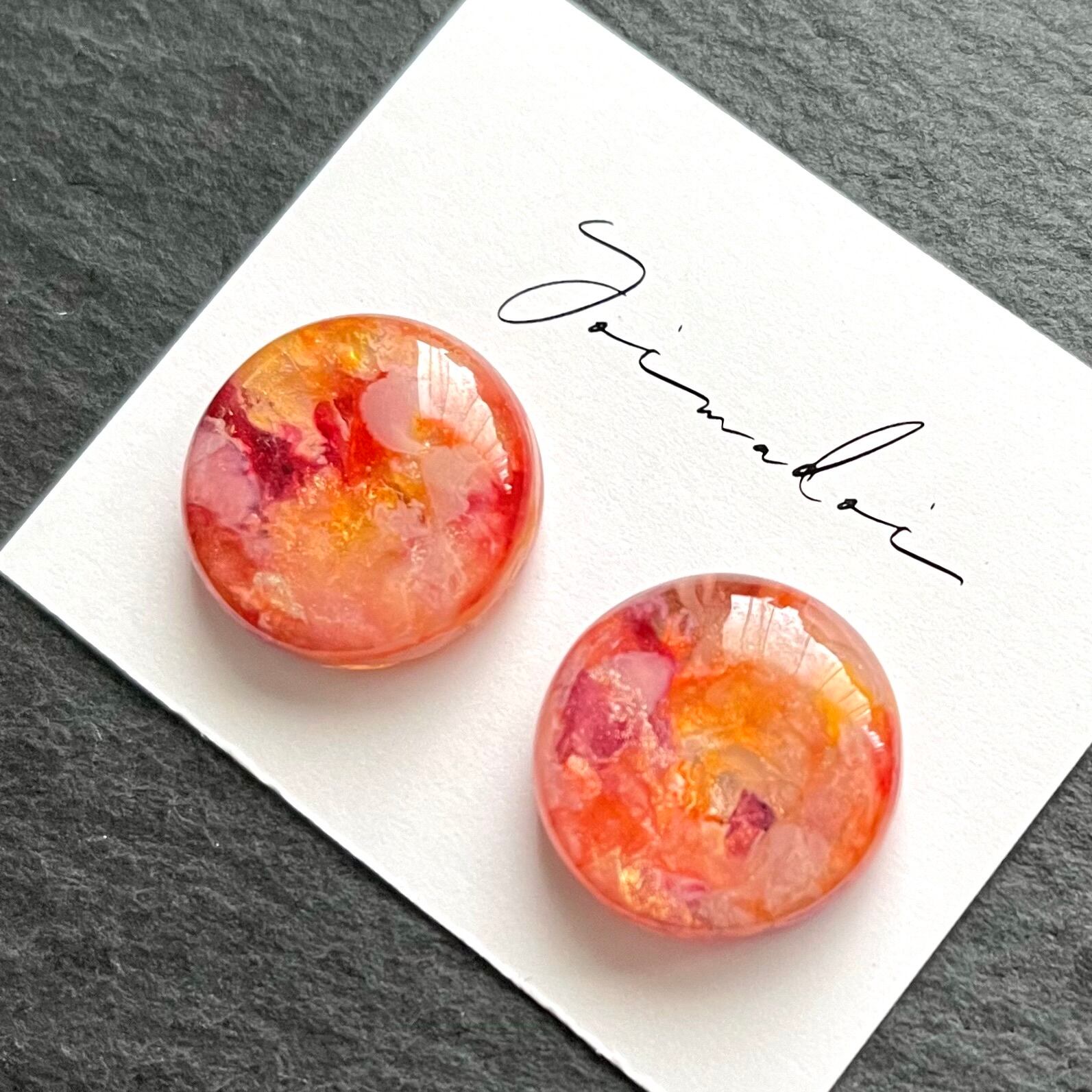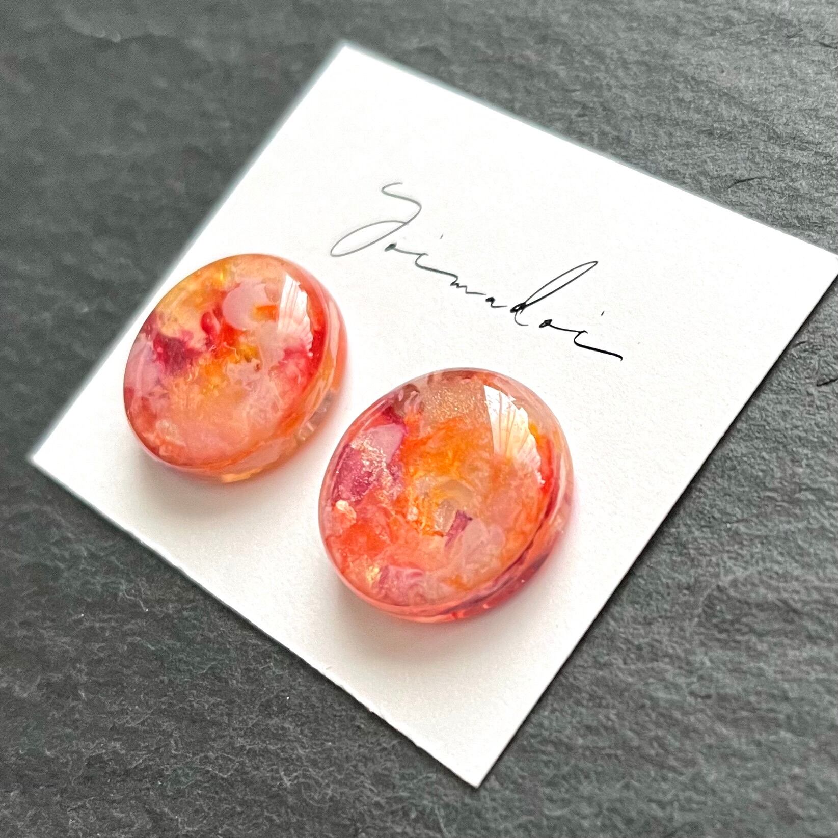 ○レジンと着色料のみで制作しております。意識して模様を作ってはおりますが、その時の滲みや拡がりによってどうしても変わってきます。色の出方や模様には個体差が出る事をご了承ください。近づけて作りますが、写真と同じにはなりません。