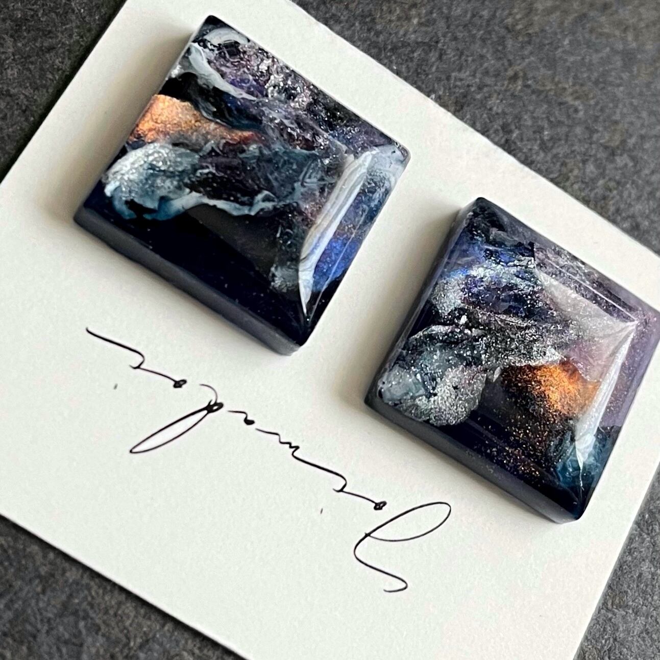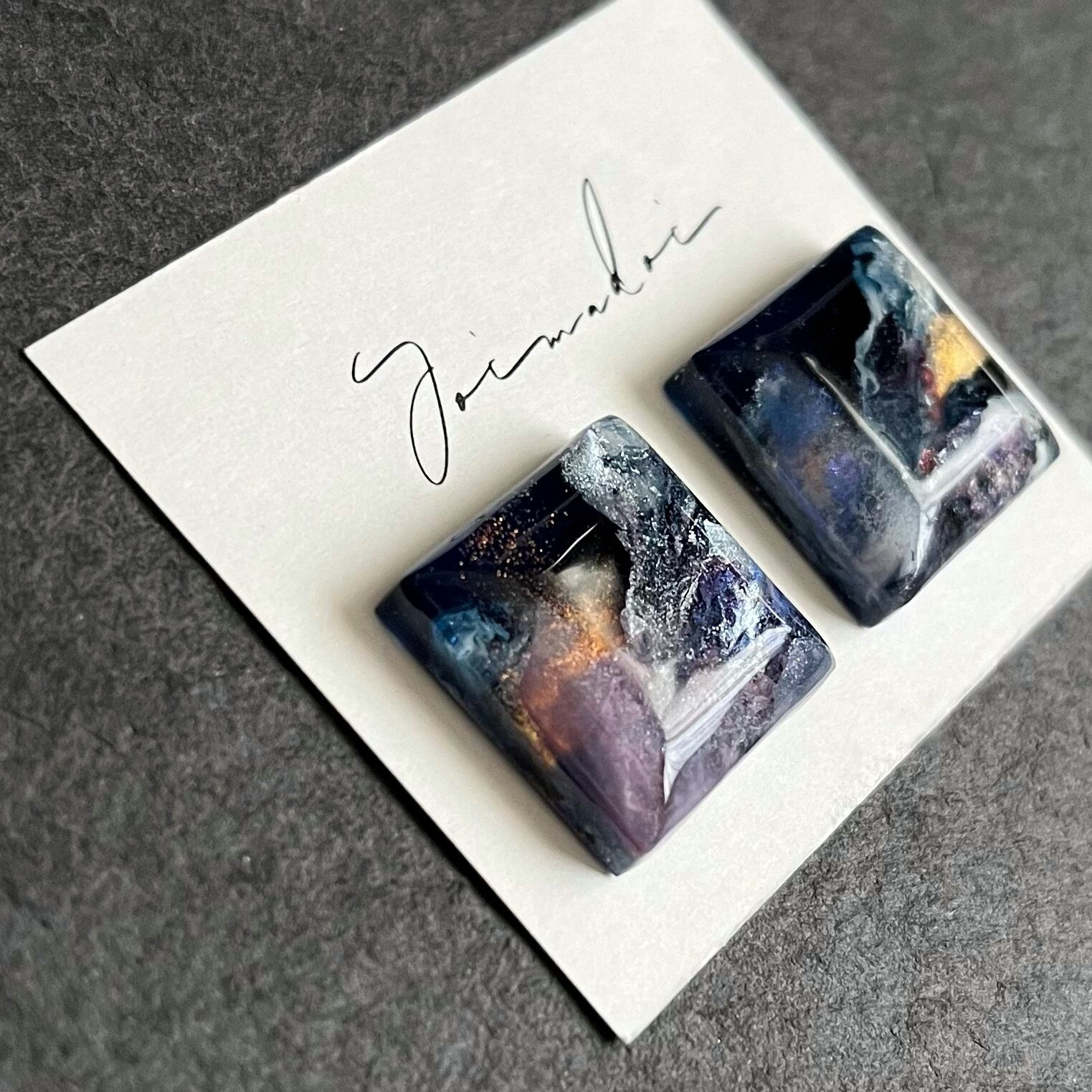 【窓の外の夜】19mm×19mm 耳飾り