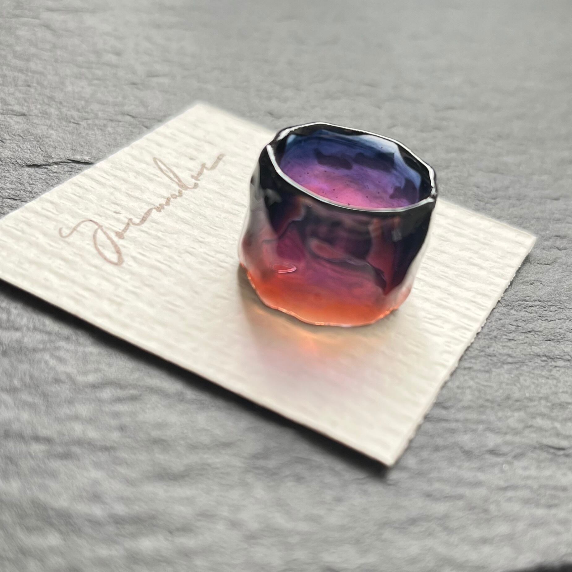 *サイズは日本標準規格で作られたリングゲージで測っておりますが、型を使わずフリーハンドで制作している為に幾分かの誤差が出ます。また、幅広なリングの為ぴったりめのサイズでご注文いただくと少し窮屈に感じる場合がございます。